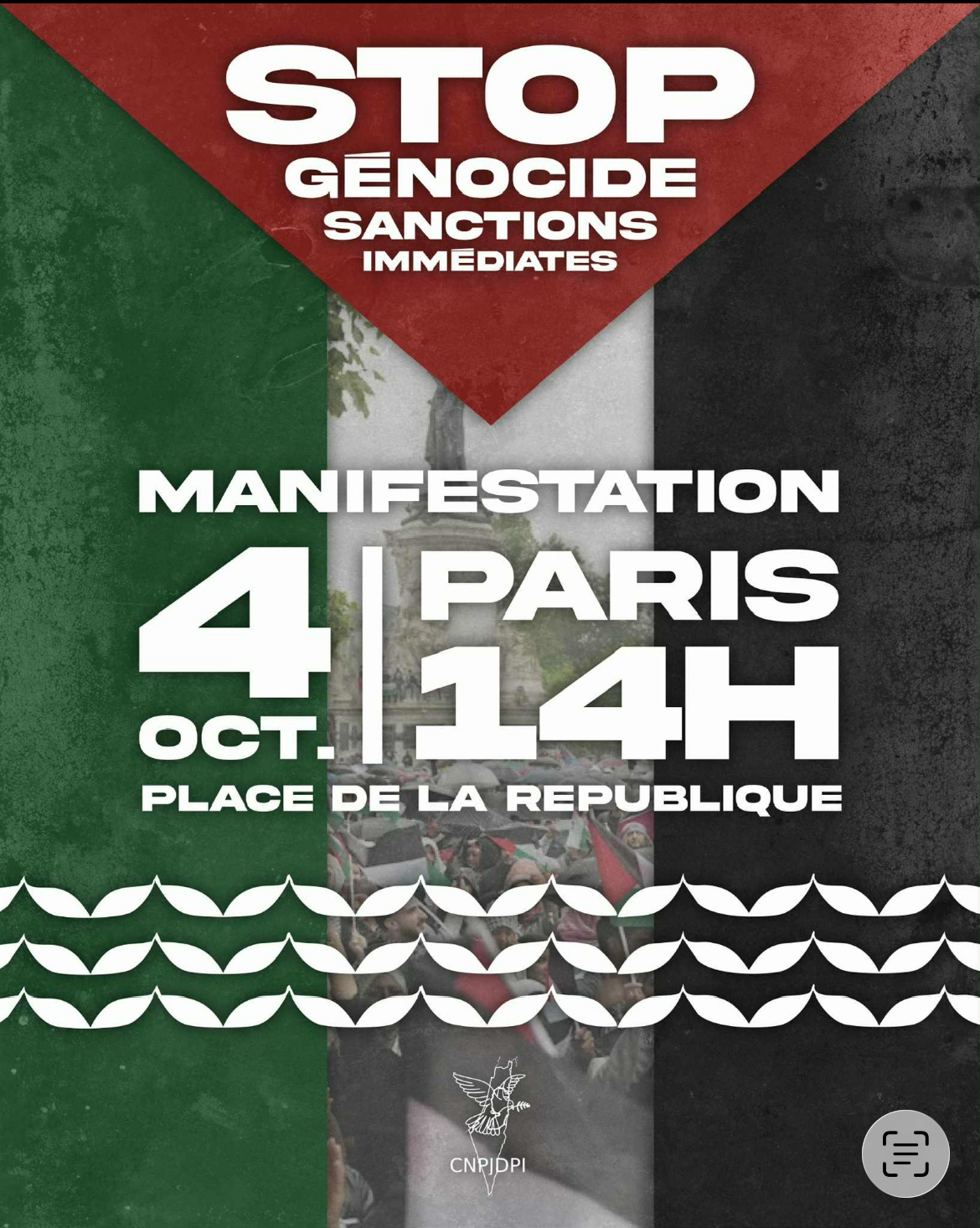 C’est le monde entier qui se mobilise aujourd’hui.Nous vous appelons à participer, sur la base de cet appel, aux rassemblements et manifestations dans toute la France en soutien à la Palestine, notamment le 4 octobre, ainsi qu’aux initiatives de soutien aux Flottilles. A Paris, une grande manifestation unitaire pour la fin du génocide partira de République le samedi 4 octobre à 14h00.
